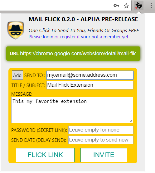 Mail Flick is a FREE tool to flick a link to you and/or friends with just one click.